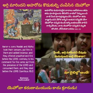 అగ్గి మారింది అని అహరోను ఇద్దరు కొడుకులని చంపేసిన యెహోవా.