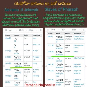 మూల పదం ఒక్కటే అనువాదాలు వేరు వేరు. యెహోవా సర్వెంట్స్ VS ఫరో బానిసలు ఈ క్రింది బైబిల్...