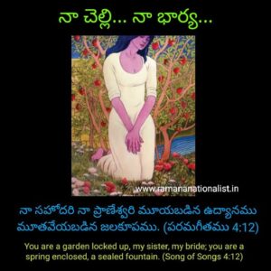 శృంగారగీతాలాపన -2 (పరమగీతం వివరణ) సోలమన్ రచించిన పరమగీతం (బైబిల్ చాప్టర్) లో ఒక వచనం గురించి ఇప్పుడు...