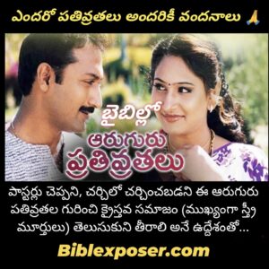 బైబిల్ దేవునిచే అమోదించబడిన ఆరుగురు పతివ్రతలు ఎవరు అని వెతకగా బైబిల్ చెప్పే సమాధానం ఇలా ఉంది. ఆ...