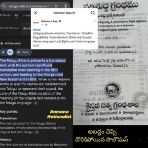 సొలొమన్ గారి వాదనకు కౌంటర్ సొలొమన్ వాదన: “పరిశుద్ధ గ్రంథమును అనువాదం (Translation) చేయలేదు, లిప్యంతరీకరణ (Transliteration) చేశారు....