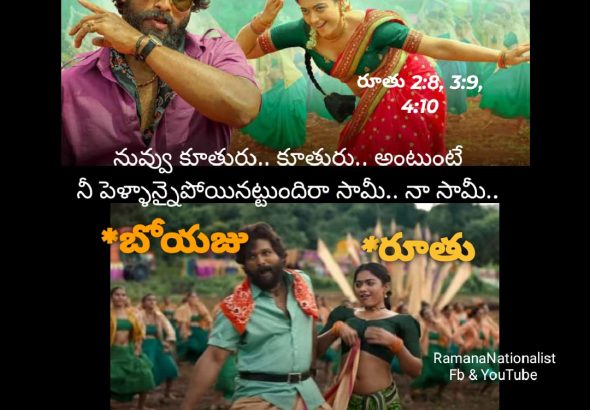 బైబిల్లో ప్రాచుర్యం పొందని రూతు కథ! సారీ బూతు కథ! దావీదు ముత్తాతల్లో ఒకరైన బోయజుకి భార్య ఈ రూతు. ఈమె బోయజుని పెల్లాడక ముందు అతని పొలంలో పనిచేసుకునే ఒక దాసీ. భర్త చనిపోయి కష్టాల్లో ఉన్న ఆమె యొక్క … Continue reading కూతురు కూతురు అంటూనే కడుపు చేసిన బోయజు
