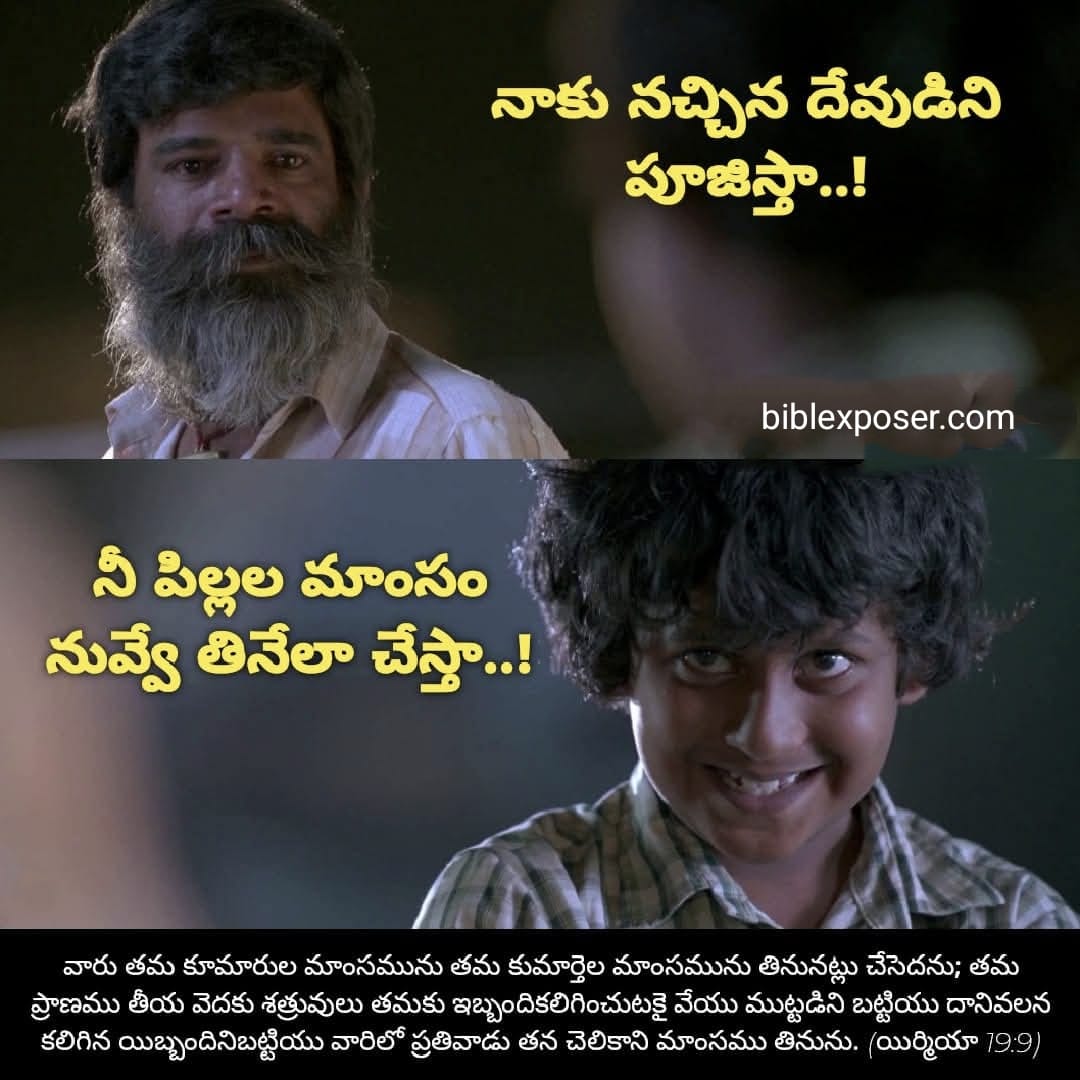 యెహోవా కోపం గురించి తెలుసుకున్న భక్తుడు తల్లులే తమ పిల్లలను వండుకుని తినేలా చేయొద్దు మహాప్రభో అంటూ వేసుకునే రేరెఫెరెన్సు విలాపవాక్యములు అనే గ్రంథంలో మనం చూస్తాము.