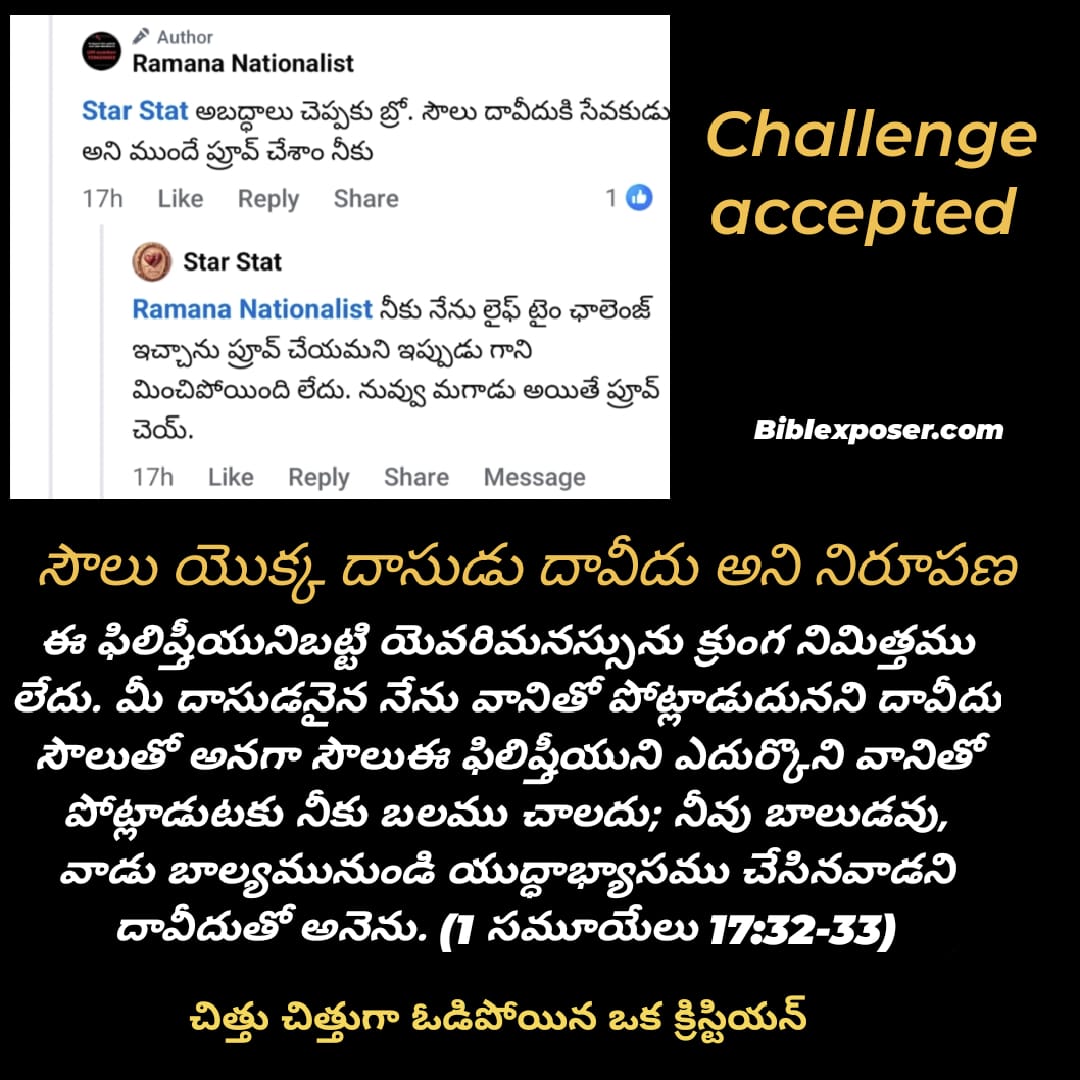 సౌలు దావీదుకి యజమాని అన్న బైబిల్ వాక్యం: