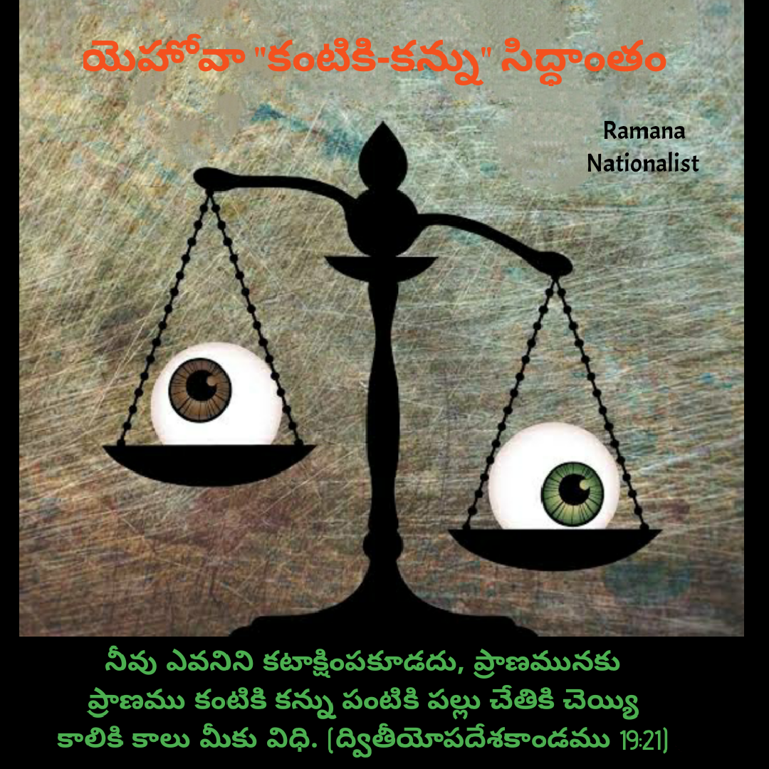 పాత నిబంధనలో యెహోవా పెట్టిన అనేక నియమాలలో ఒకటి. కంటికి కన్ను సిద్ధాంతం. అయితే దీన్ని తరువాత కాలంలో యేసు కొట్టిపారేశాడు.