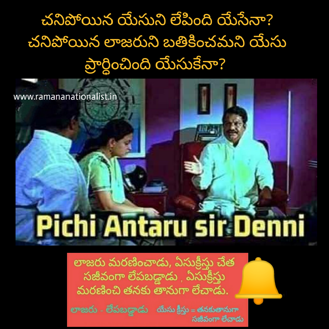 1 thought on “చనిపోయిన యేసుని లేపింది యేసేనా?చనిపోయిన లాజరుని బతికించమని యేసు ప్రార్ధించింది యేసుకేనా?పిచ్చి అంటారు సార్ దీన్ని..!