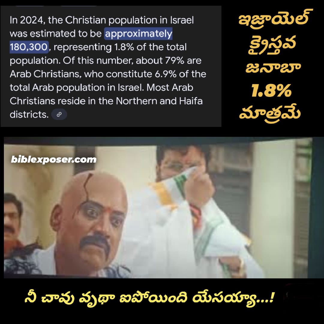 ఇజ్రాయెల్ యెహోవాని దేవుడు అంటుంది తప్ప యేసుని కాదు. ఇక్కడ మన వాళ్లకి అసలు యెహోవా అంటే కూడా తెలియదు. యేసు యేసు అని ఊగిపోతు ఉంటారు.